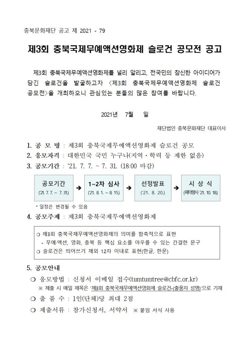 | 제3회 충북국제무예액션영화제 슬로건 공모 | |||||