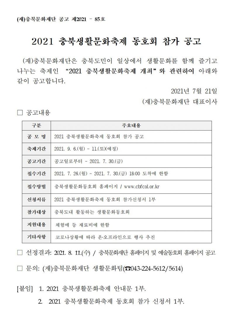 | 2021 충북생활문화축제 동호회 참가 공고 | |||||