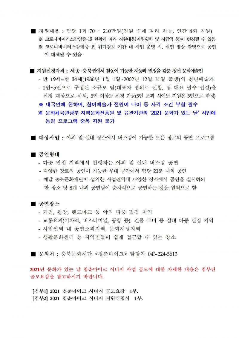 | 문화가 있는 날 <청춘마이크 시너지> 참여자 공모 세종·충북권역 | |||||