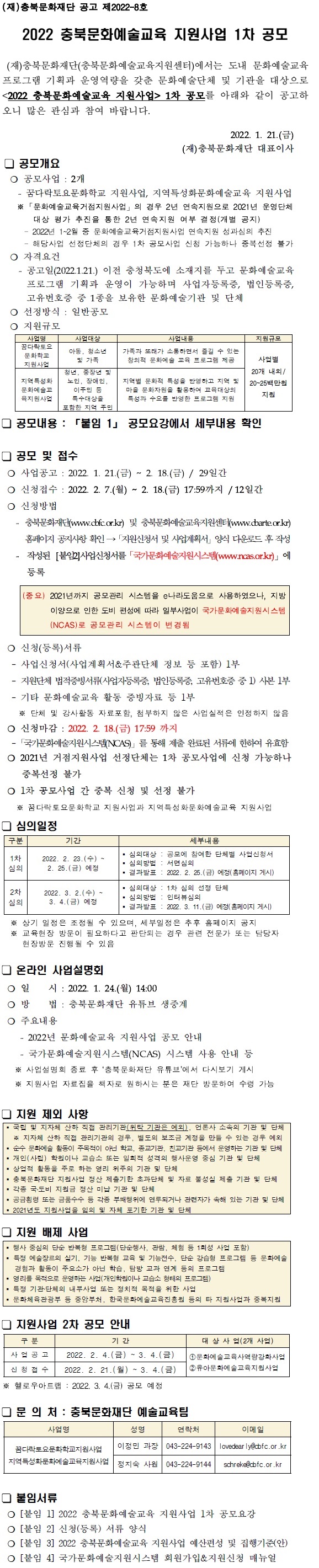 | 2022 충북문화예술교육 지원사업 1차 공모 | |||||