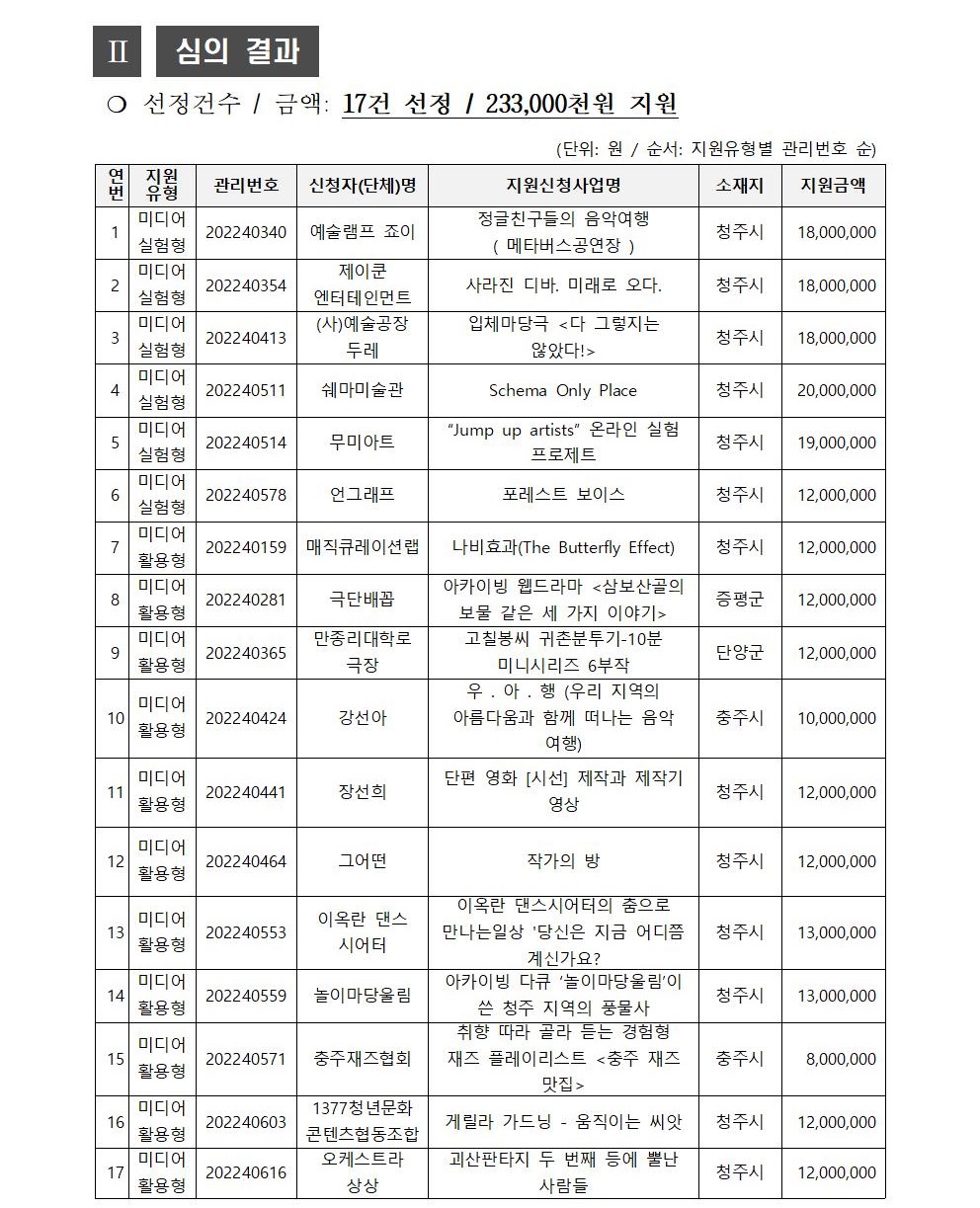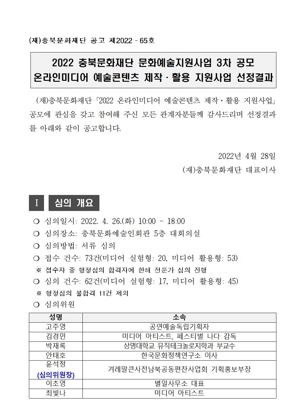 | 2022 온라인미디어 예술콘텐츠 제작·활용 지원사업 선정결과 | |||||
