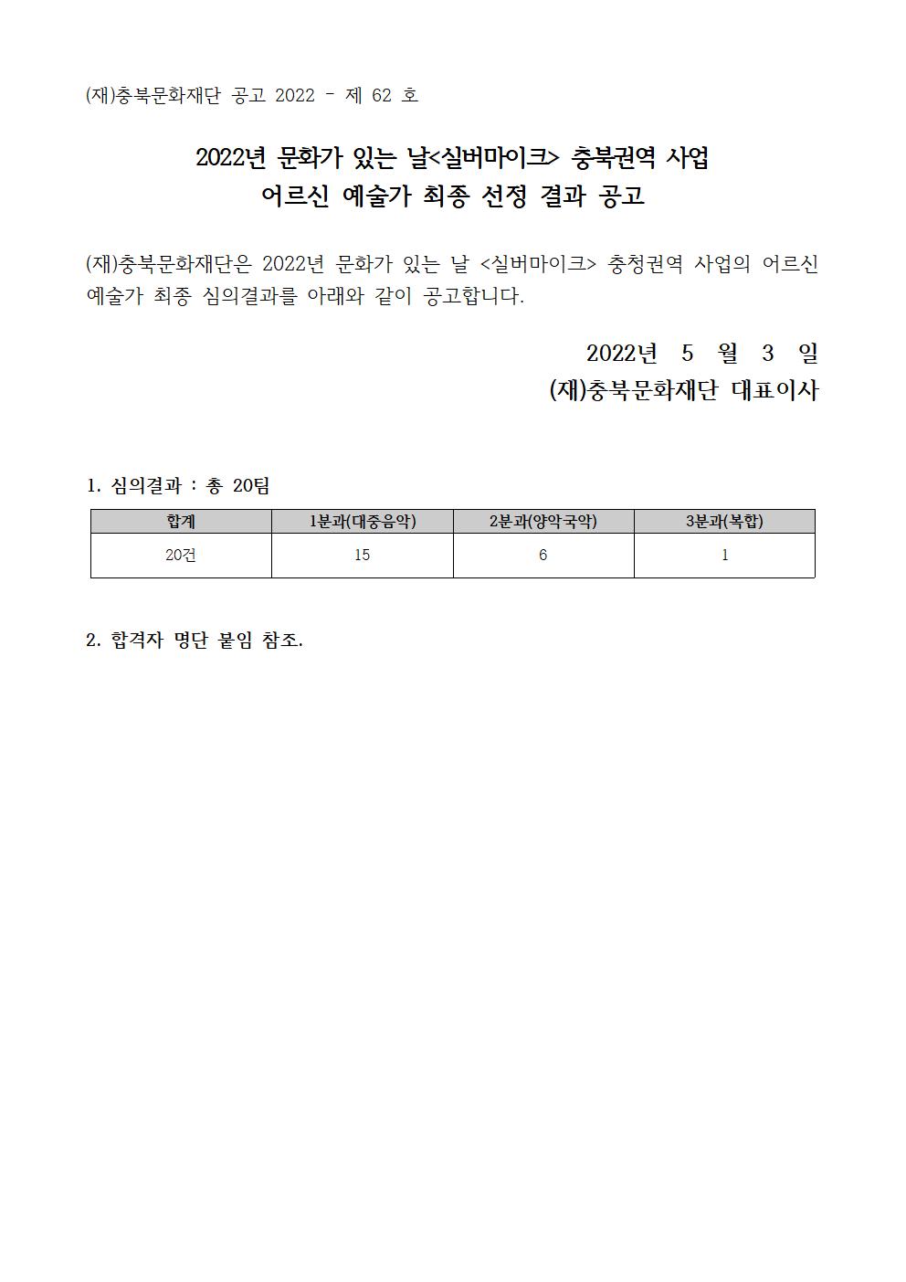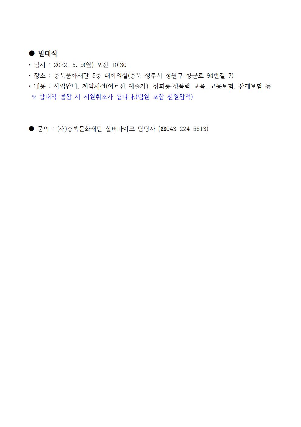 | 2022 문화가 있는 날 <실버마이크>충청권역 어르신 예술가 최종발표 | |||||
