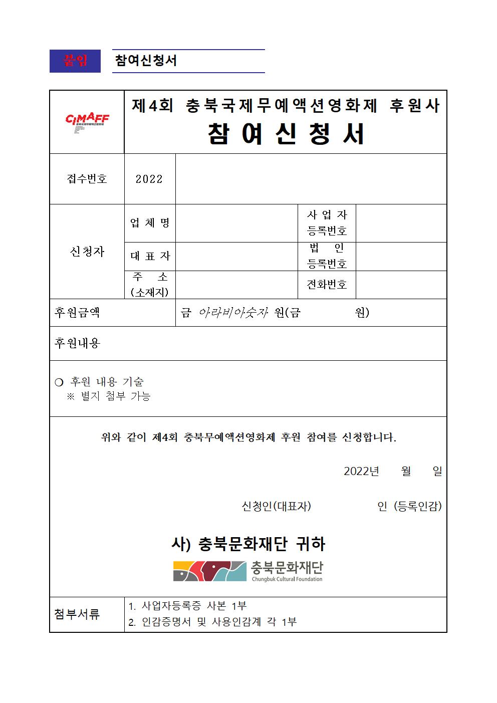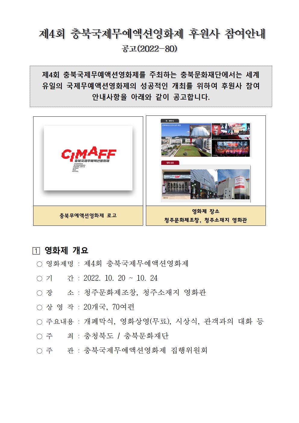 | 제4회 충북무예액션영화제(CIMAFF) 공식 후원 기부 기업을 모집합니다. | |||||