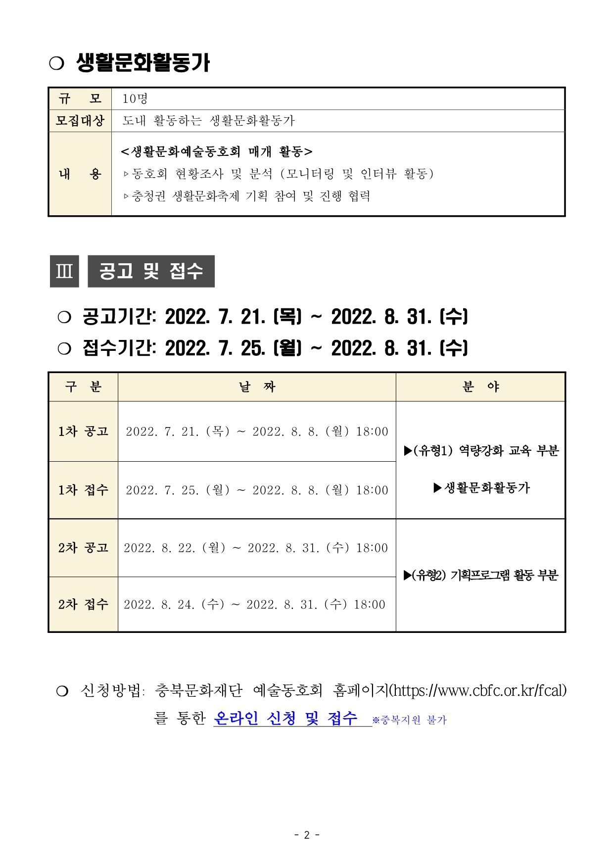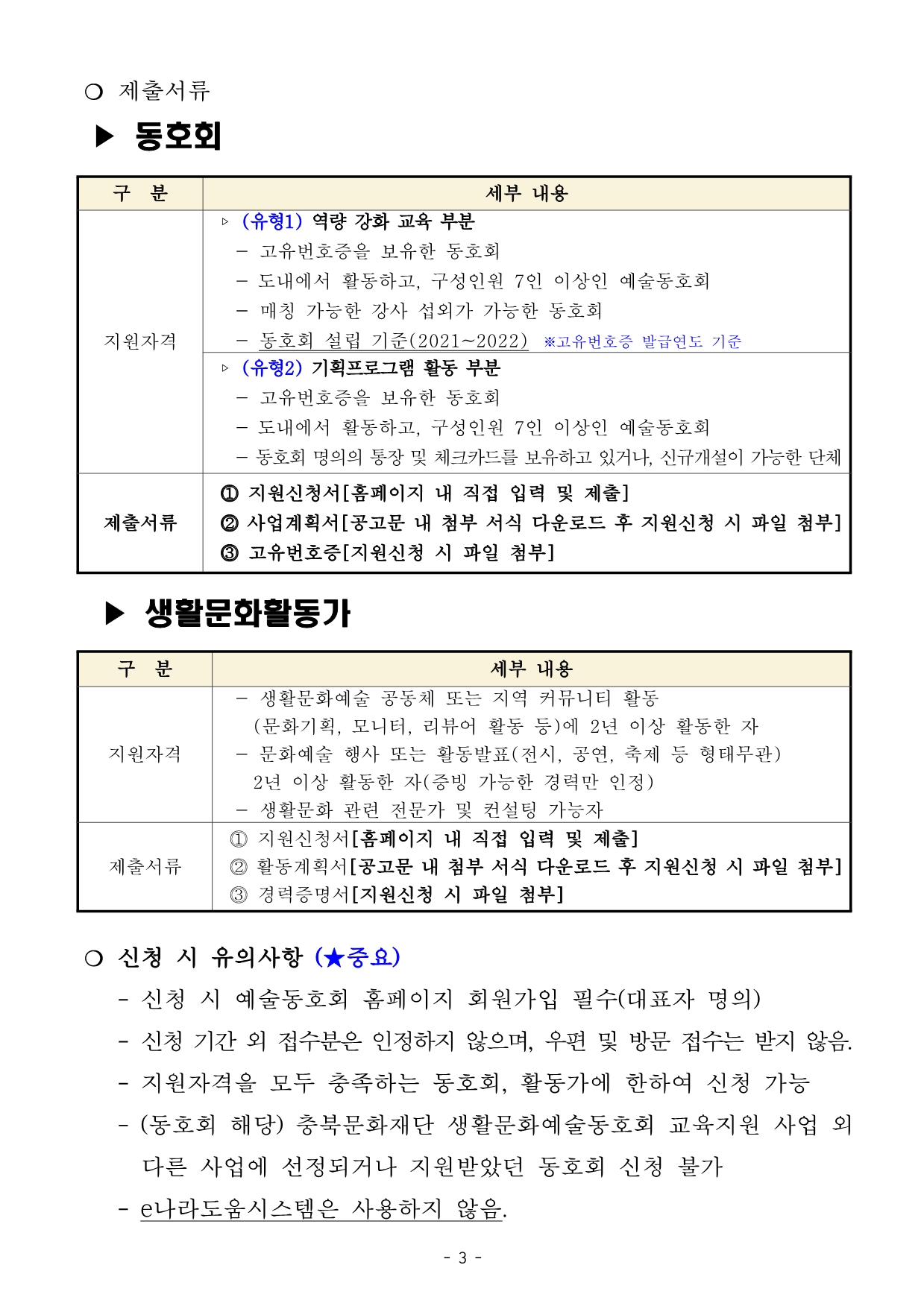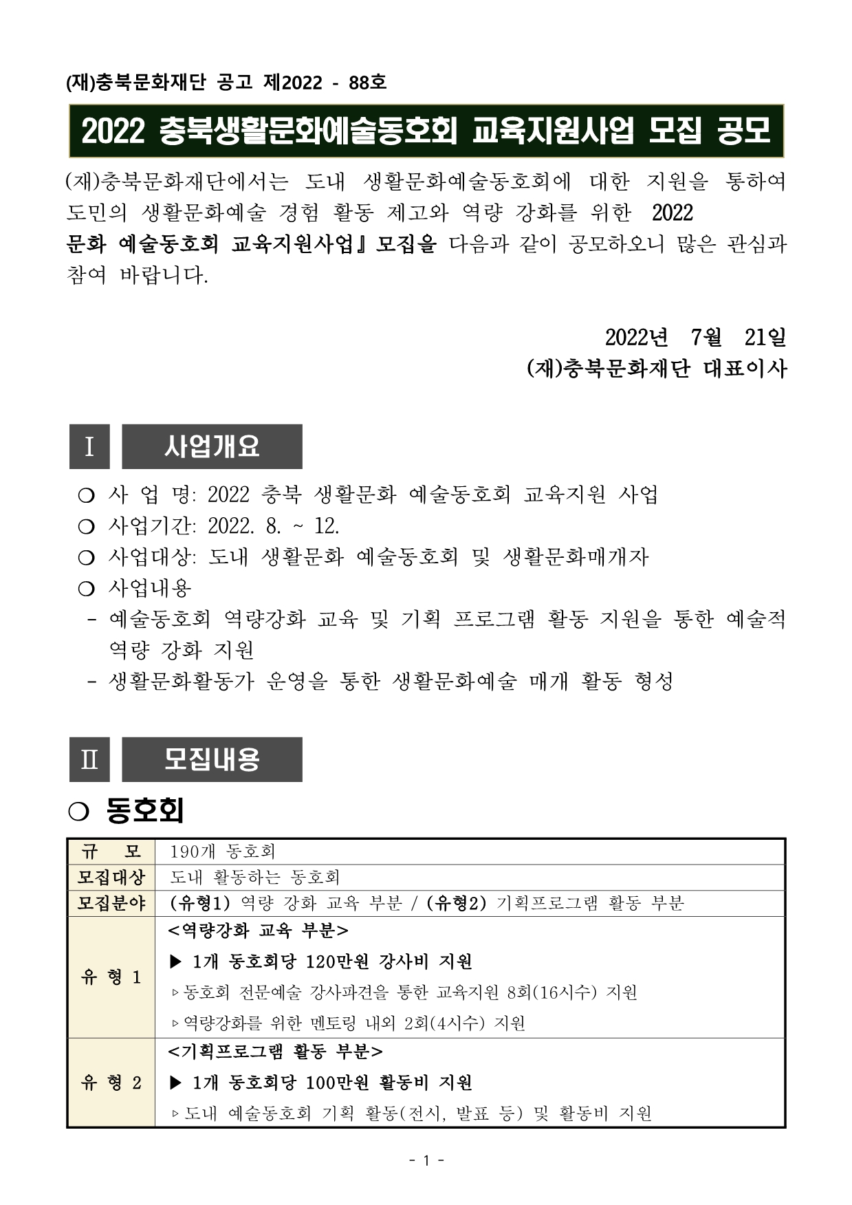 | 2022 충북생활문화예술동호회 교육지원 사업 모집 공고 | |||||