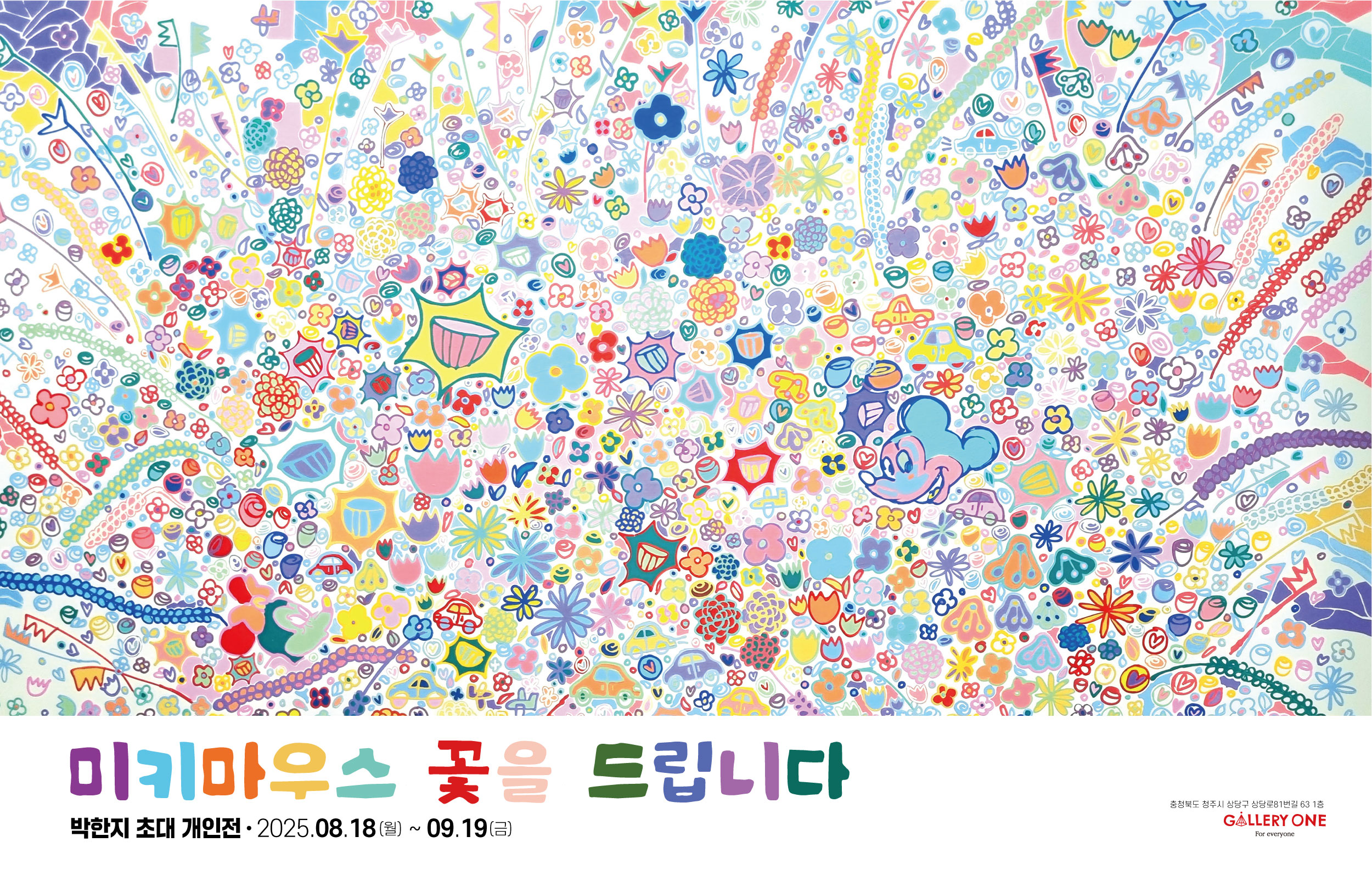 갤러리 원 청주점에서 박한지 작가 초대개인전 "미키마우스 꽃을 드립니다"이 전시 진행됩니다.