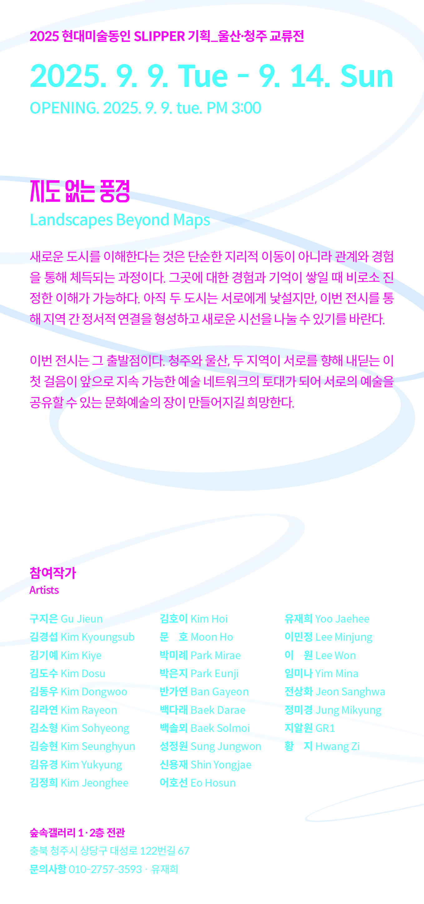 | 주관/주최/후원 | 주최·주관: 현대미술동인 Slipper / 후원: 충청북도, 충북문화재단 | 작가명(단체) | 현대미술동인 Slipper | |