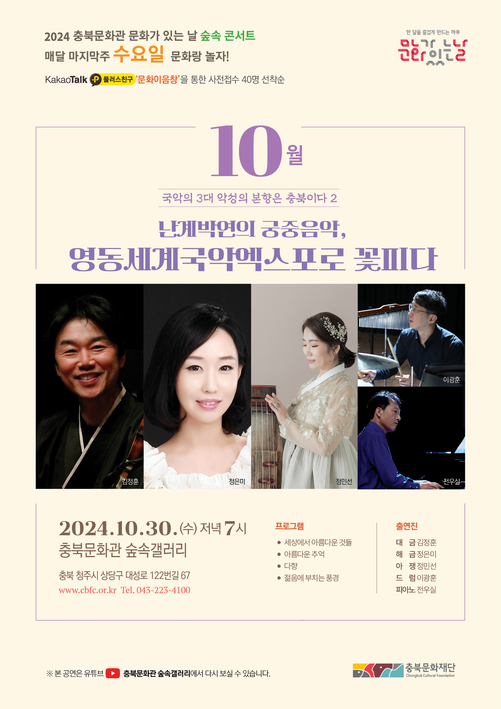 | 충북문화관 문화가 있는 날 10월 숲속콘서트 | ||||