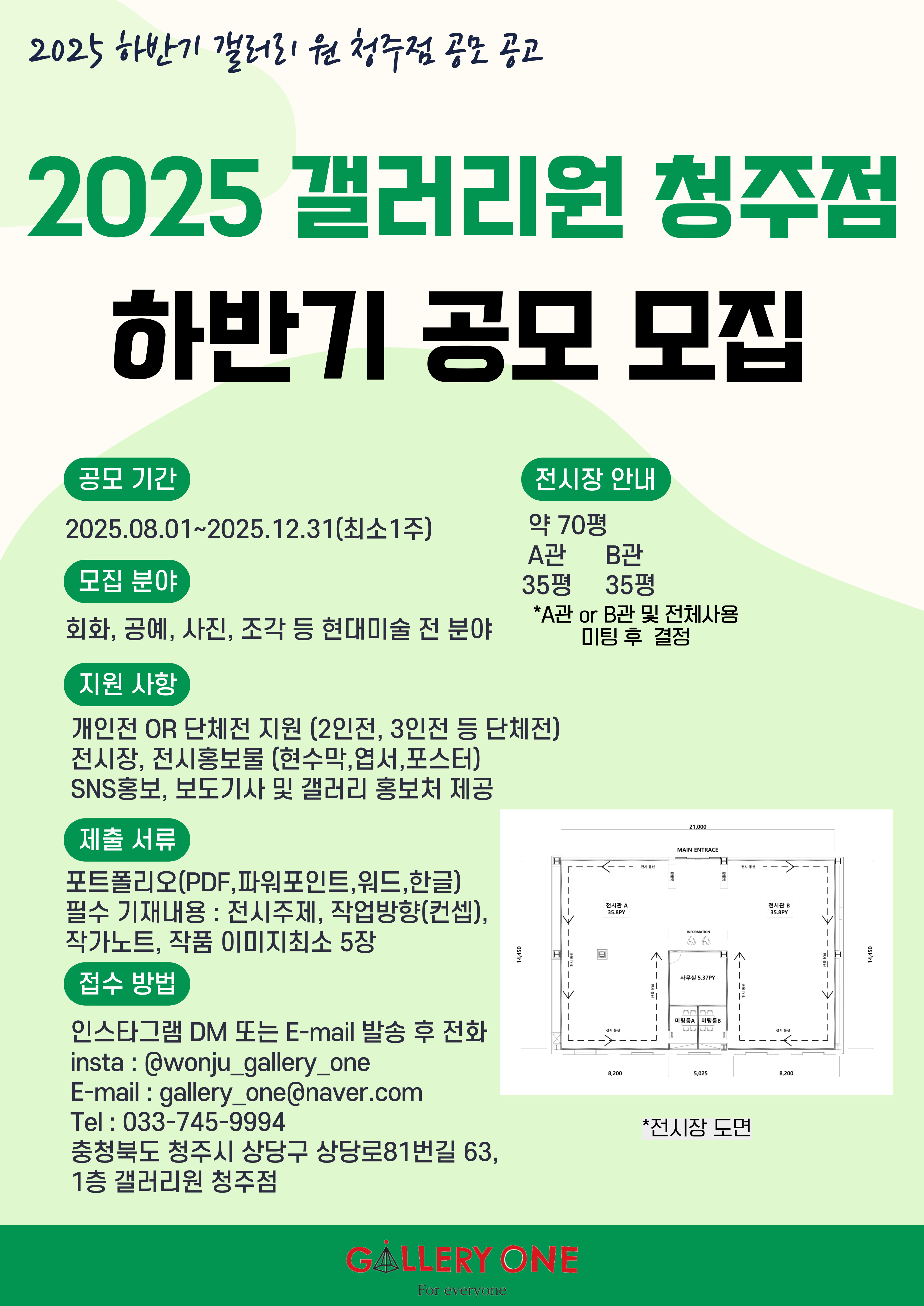 ![]() GALLERY ONE 청주점 2025 하반기 전시 공모 안내 7월, 청주점 오픈 예정