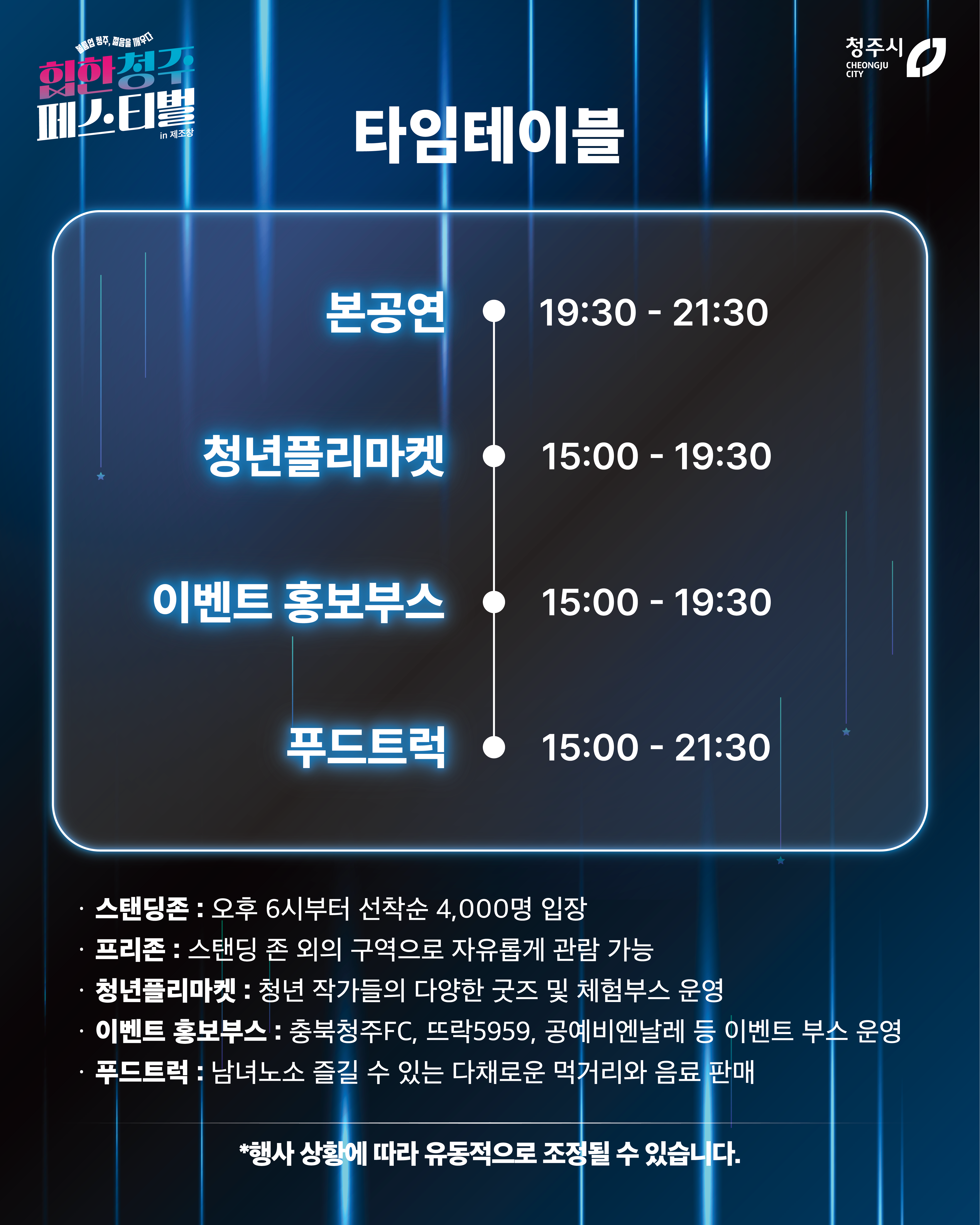 다채로운 공연, 전시, 그리고 영상촬영으로 청주의 예술과 문화를 한눈에 즐기고 소중한 추억도 만들 수 있는 기회 놓치지 마세요! |