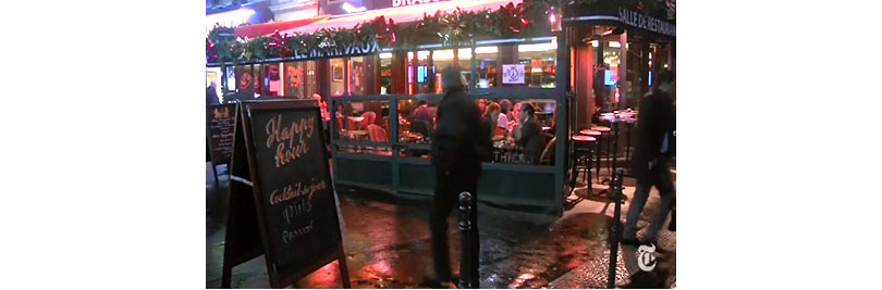뉴욕타임즈는 130여명의 사상자를 낸 파리 테러 1주일 후 ‘파리 시민들은 일상을 지키는 것이 테러에 맞서는 것’이라는 생각을 하고 있다는 보도를 했다. 엄청난 재난을 겪고 전 세계가 충격에 빠졌지만 정작 파리 시민들은 테러 며칠 후 다시 카페에 나와 앉아 있었던 것이다. (2015년 11월 17일 뉴욕타임즈 인터넷 판 동영상 기사 “French Return to Cafes in a Show of Defiance” 갈무리)