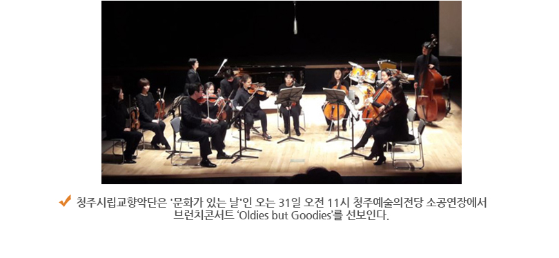 예술이 있는 아침, 청주시립예술단 '브런치콘서트'가 이날 오전 11시 청주예술의전당 소공연장에서 선보인다.