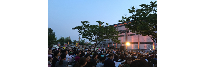 당일 청주첨단문화산업단지 광장 야외무대로 막 들어섰을 때에는 도립교향악단과 아이들이 리허설 중이었다. 시작 한 시간 전임에도 불구하고 벌써부터 앉을 자리가 없어 돗자리를 펴는 사람들, 의자를 찾는 사람들로 분주했다.