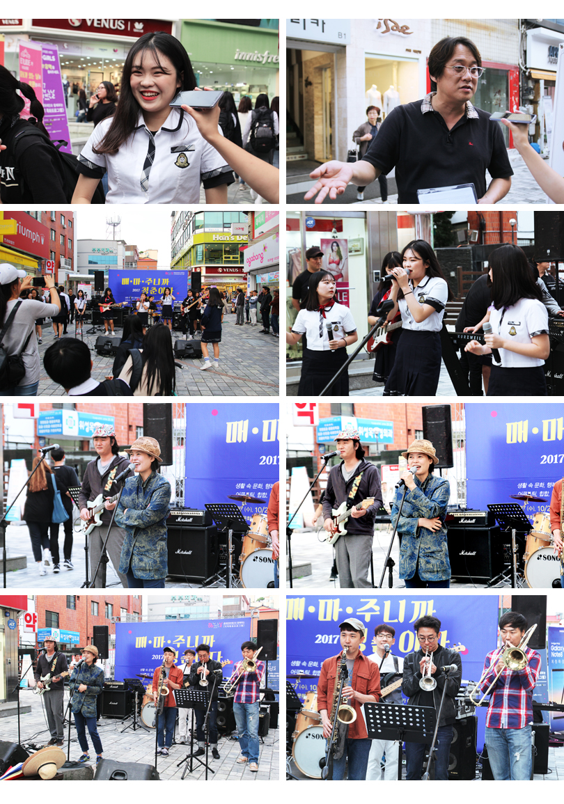제천의 상가 중심에는 ‘문화의 거리’라는 길이 있다. 제천 한방바이오엑스포를 기념하는 손도장 동상들이 설치되어 있고 분수대도 작지 않은 크기로 예쁘게 조성되어 시내의 대표적인 조형물이 되었다. ‘문화의 거리’라는 이름 그대로 이곳은 제천 시민의 활발한 문화생활이 있을 것을 기대하며 지어졌다고 한다. 떼를 지어 기웃거리는 고등학생들, 파란만장한 늦여름의 공기가 가득한 이 거리에서 모두가 화합하는 장이 없다는 것은 매우 섭한 일이다. 그리하여 제천 지역에서 ‘매마수니까 청춘이다’ 프로그램이 시행되었다.