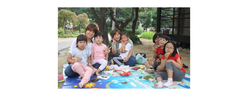 “조~심. 조~심. 연잎 안에 물이 굴러다니고 있어.” 친구들과 주고받는 이야기도 평소와는 다르게 조심스럽더니 연잎에 담겨진 물을 흘리지 않으려고 숨도 크게 쉬지 않는다. 그런데 어느 순간, 물을 바닥에 쏟고 말았다. “아~~” 아이들과 지켜보던 엄마들은 입을 모아 높은 ‘도~~’음을 내고, “자~~ 다시!” 곧 이어 그 자리는 금세 웃음바다가 되어버렸다.