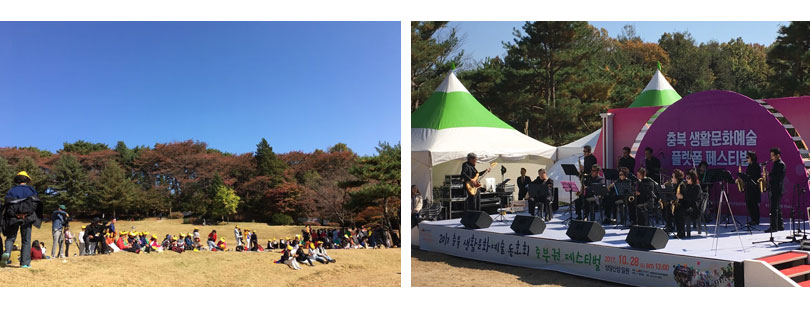 따뜻한 가을햇살 아래 행복한 기운이 가득한 곳을 찾았다. 드높은 가을 하늘이 아름다운 청주 상당상성에서 흥겨운 축제가 한창이었다. 가을빛으로 곱게 물든 나무 아래 잔디밭에 무대를 설치하고, 열정적인 공연무대를 위한 준비가 한창이였다. 바로 이곳이 충북문화재단과 충북문화코디네이터협의회가 주관하는 생활문화예술플랫폼 생활문화예술동호회 페스티벌의 현장이다.