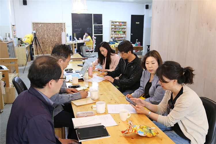 만난 날은 지난 5월 21일(월)이었고, 장소는 ‘654 작업장’(사직2동 국보제약 골목 내)이었다. 만난 이들은 ‘틔움’ 멘토팀 강선미(디자이너, 퍼실리테이터) 조송주(미술가, 멘토) 추연신(미술가, 멘토) 세 분과, 이은정(미술가), 노경민(미술가) 등 두 분이다.