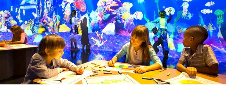 빔 프로젝트를 통해 어두운 전시장 벽면에 투사 된 다양한 종의 물고기들과 해양 생명체들이 마치 살아 있는 듯 움직이고 헤엄을 친다. 방문객들은 물고기에게 먹이를 줄 수도 있고, 자유롭게 헤엄치는 물고기에 손을 뻗어 만지면 반응하는 모습을 관찰 할 수도 있다.