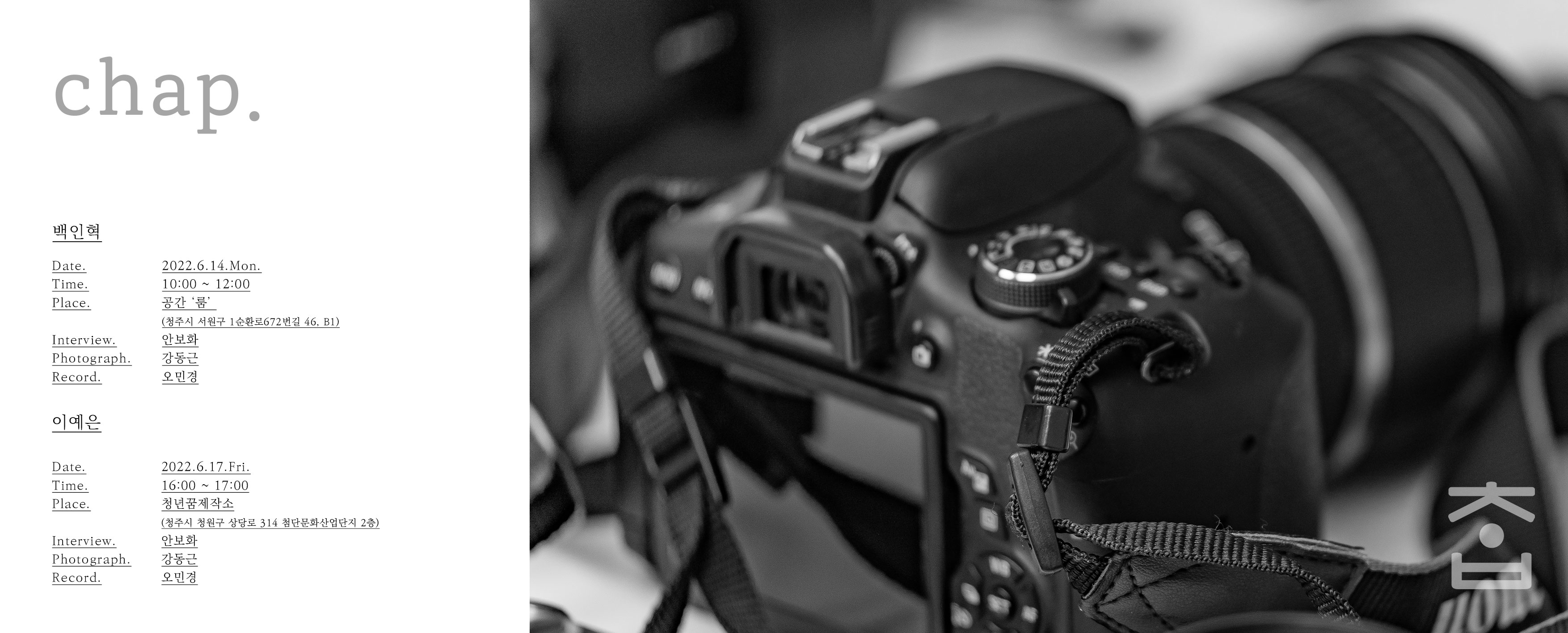 #충북문화재단 #충북문화예술교육지원센터 #문화예술교육 #웹진 #chap #청주 #공간매니저 #뮤지션 #룸 #백인혁 #아이노크 #콰트로글래시스 #윈틀러 #청주공연장 #열정공장 #청년꿈제작소 #이예은 #싱어송라이터 #작곡가 #라이징스타콘 #월간청년 #문화충동 #청년