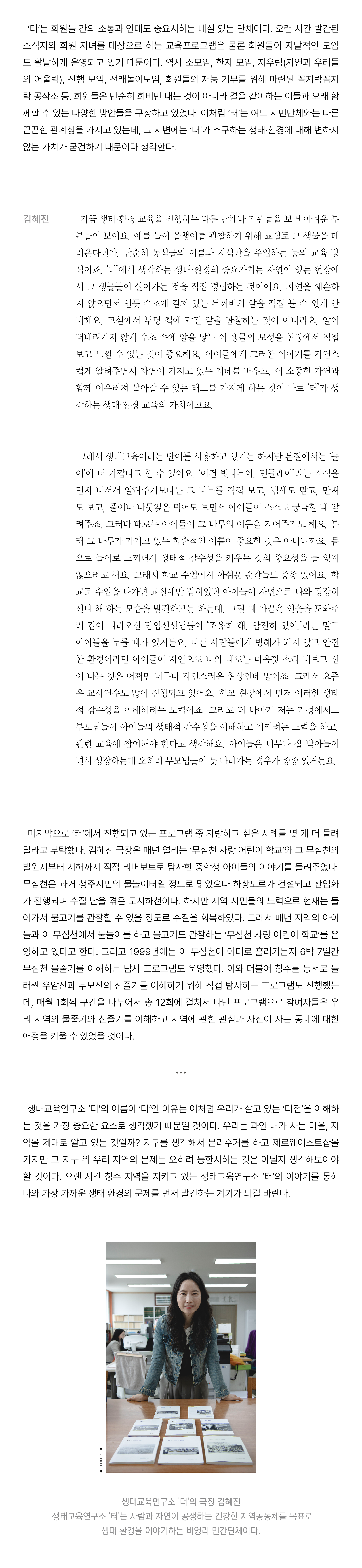 우리의 ‘터’에서, 우리의 이야기를 먼저 이야기하자. 생태교육연구소 ‘터’