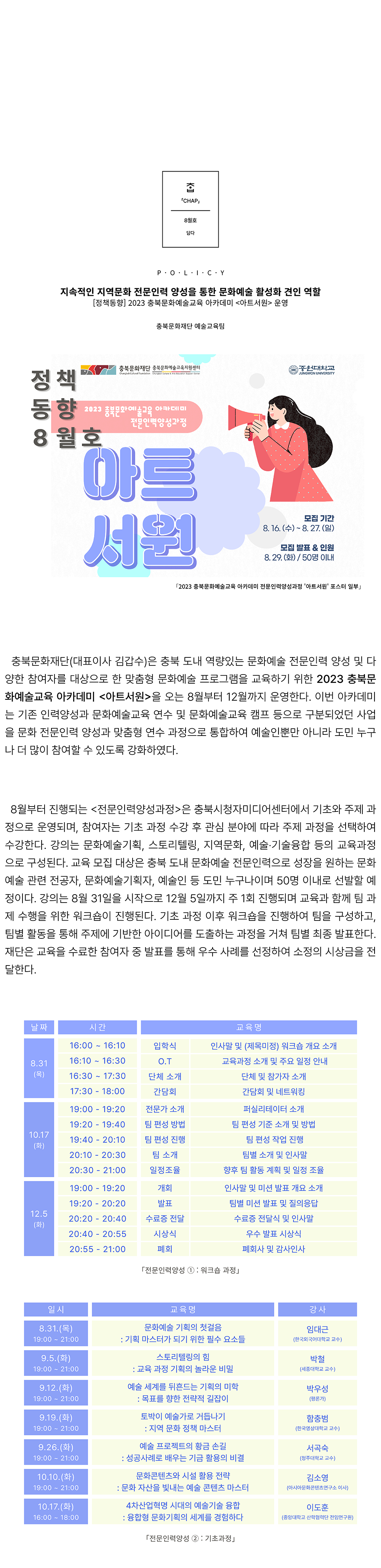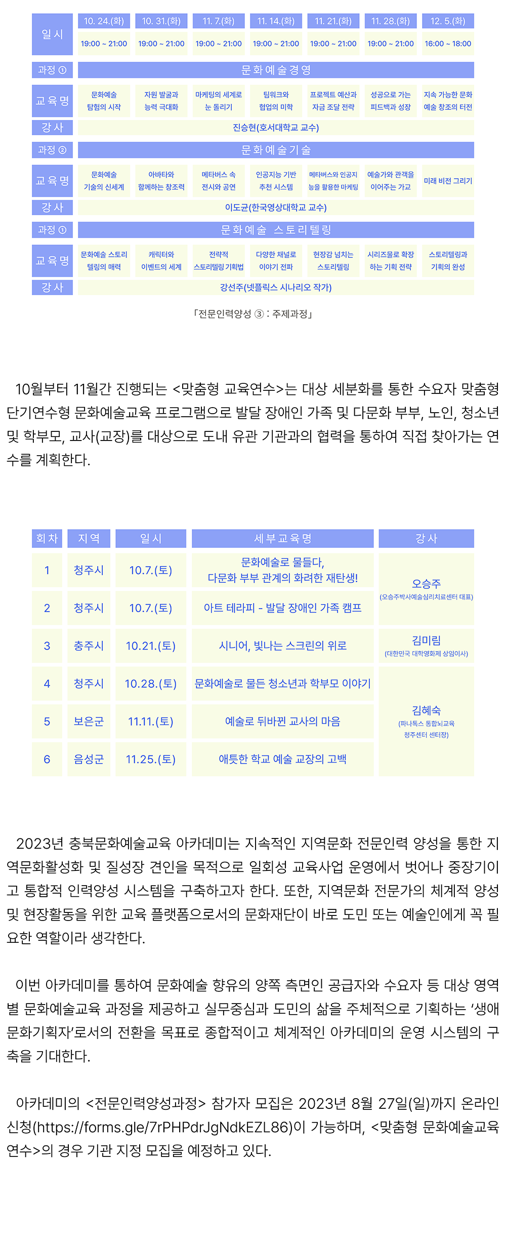 지속적인 지역문화 전문인력 양성을 통한 문화예술 활성화 견인 역할